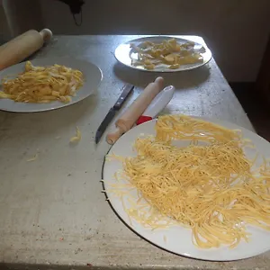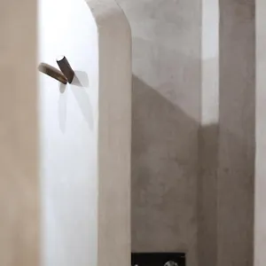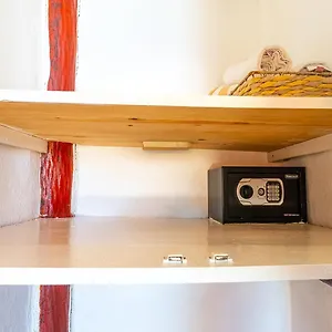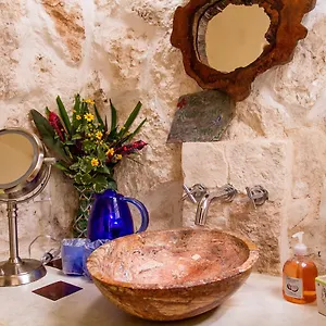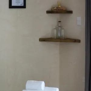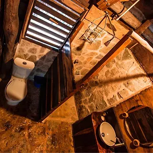The rooms have private bathrooms with a separate toilet and a shower. They are furnished with a unique decor.